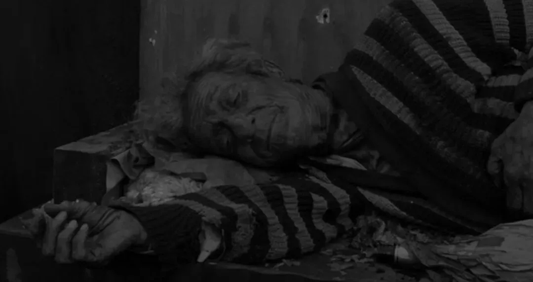 林奇从未在叙事,只是描述物的运动。《橡皮头》的物质繁杂混乱,但他却是一位坚定的自然主义者。这种自然主义始终维护着物质自身的尊严。例如,那位躺着的流民(据说他的毛衣来自林奇的一位喜欢穿破衣服的富翁邻居),这个镜头宛如凭空而现,没有任何东西与之相连。他的出现似乎仅仅是为了自身,以及一个不为人知的秘密。就像那些泥土、植物、血液、电光、硬币和水。一个男人坐在那里,不为别的,只是在打开一扇大门。我们最好欣赏他那如动物内脏般野蛮的皮肤,而不是试图在墙壁上找到一位对应的神及其名号。