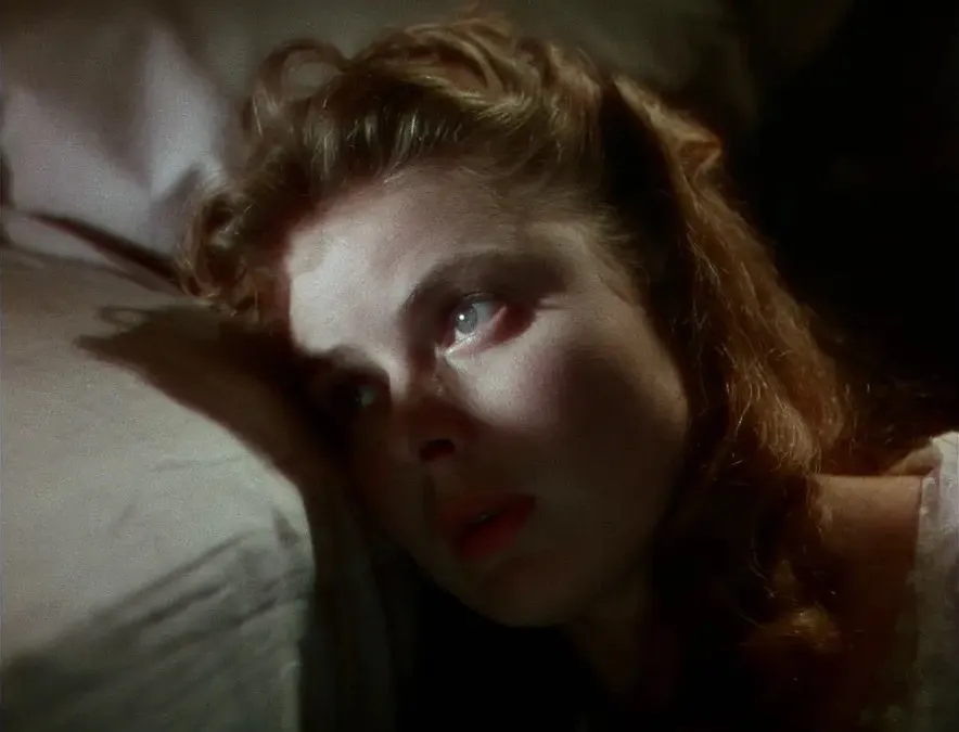 《忏情记》[I Confess, 1953]的中心由一种非凡的“悬置时间[temps suspendu]”构成;在一刻钟里,除了卡尔·马尔登[Karl Malden]在众人间穿梭外,角色们都被定格在一种完全的静止中;但这恰是行动的扭结;主角们在此全神贯注,自我消融,在一种共同的内向性中,将所有运动都收回内在;他们在沉默中进行着平行的冥想,彼此分离又相互联结;这是一种仅通过个人的深化而达成的无声交流;因为在自我的深处,是他人。——同样是在《风流夜合花》[Under Capricorn, 1949]的中心,也发生了褒曼的独白,面对着静止的怀尔丁,她自己被囚禁在这个狭小的空间里,如笼中之兽般转圈,被囚禁在单一长镜头里;在此处,同样关乎重寻本质,潜入真理的最深处。这两部电影的最高潮瞬间、目标与终结,是两个纯粹静态调制的瞬间。——同样,随着《伟大的安巴逊》[The Magnificent Ambersons, 1942]的情节推进,人物们在我们眼前具体地凝固、聚焦;他们围绕着自身的真理扭结并消融,在其上收缩,最终与真理融为一体,在历经如此多的磨难、如此多世俗与徒劳的骚动之后,终于重新找回了它。