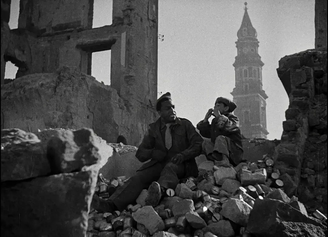 因此,罗西里尼起初将这些大和弦置于电影的开头与结尾,如《德意志零年》[Germania anno zero, 1948]所示;而今他将其置于中心:《火山边缘之恋》[Stromboli, 1950]、《一九五一年的欧洲》[Europa '51, 1952]、《意大利之旅》[Viaggio in Italia, 1954]。小提琴的音柱[l'âme,亦指灵魂],若非那让整个琴身歌唱、缺之则惰性而徒劳的东西,又能是什么呢?正是在对和弦的根音[la note fondamentale]的痴迷中,诞生了秩序与统一。