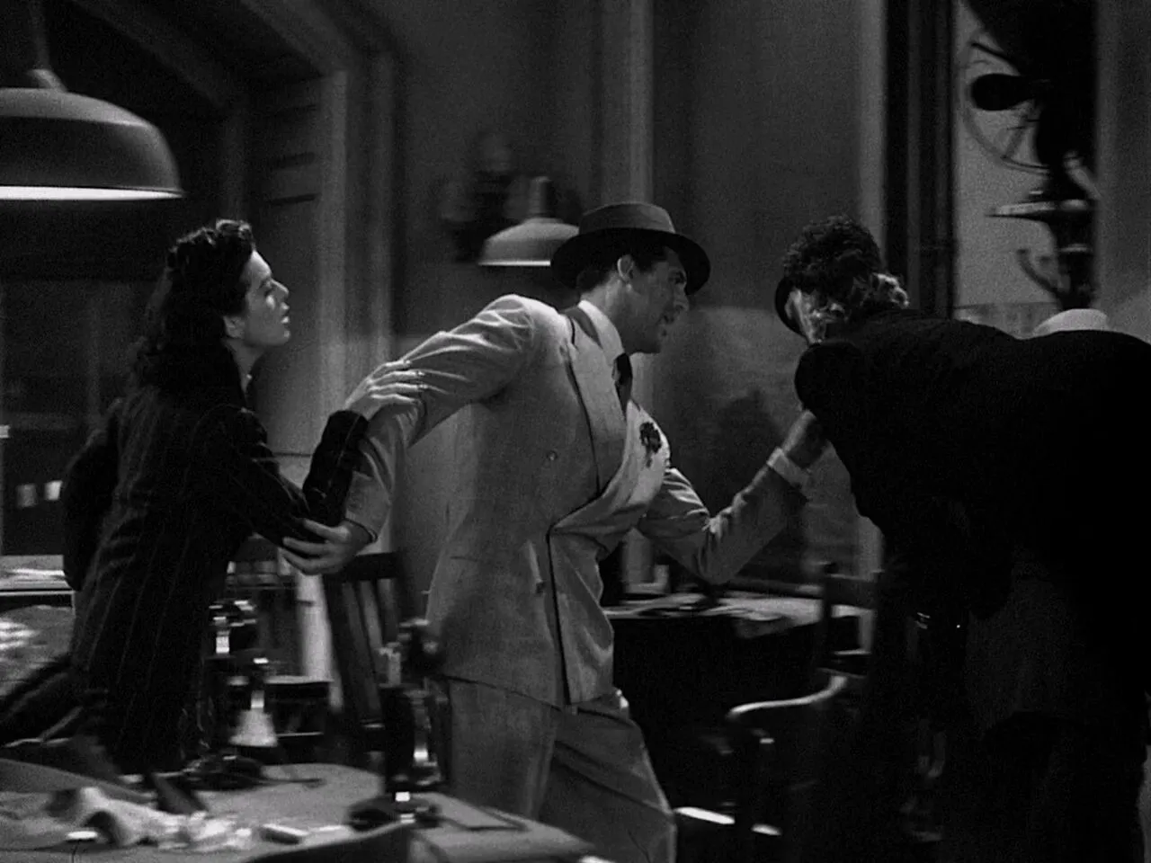 那么,一部好的喜剧电影应该拥有怎样的节奏?霍华德·霍克斯对此曾说:“如果你在画面中快速调整演员的节奏,而不是快速地交叉剪辑,你会得到更多的节奏感”2。我们可以回顾电影史馈赠给我们的一种喜剧传统:在卓别林和基顿的默片喜剧里,节奏是时而笨拙时而灵巧的身体无法及时回应麻烦时带来的连锁反应;在刘别谦的爱情喜剧里,节奏是中/全景镜头的微妙运动以及人物在空间中往复的行走搭配台词所形成的暧昧语气;在雅克·德米的歌舞片里,节奏是由轨道镜头运动的速率、歌舞和演员明媚的脸庞形成的共振;在霍克斯的经典神经喜剧《女友礼拜五》[His Girl Friday, 1940]和《育婴奇谭》[Bring Up Baby, 1938]里,节奏是语言的速率与演员焦急奔跑的身体共同制造的麻烦漩涡。在上述大部分电影里,喜剧不仅仅是语言文字的游戏,更是身体与空间、调度与速度的共谋。