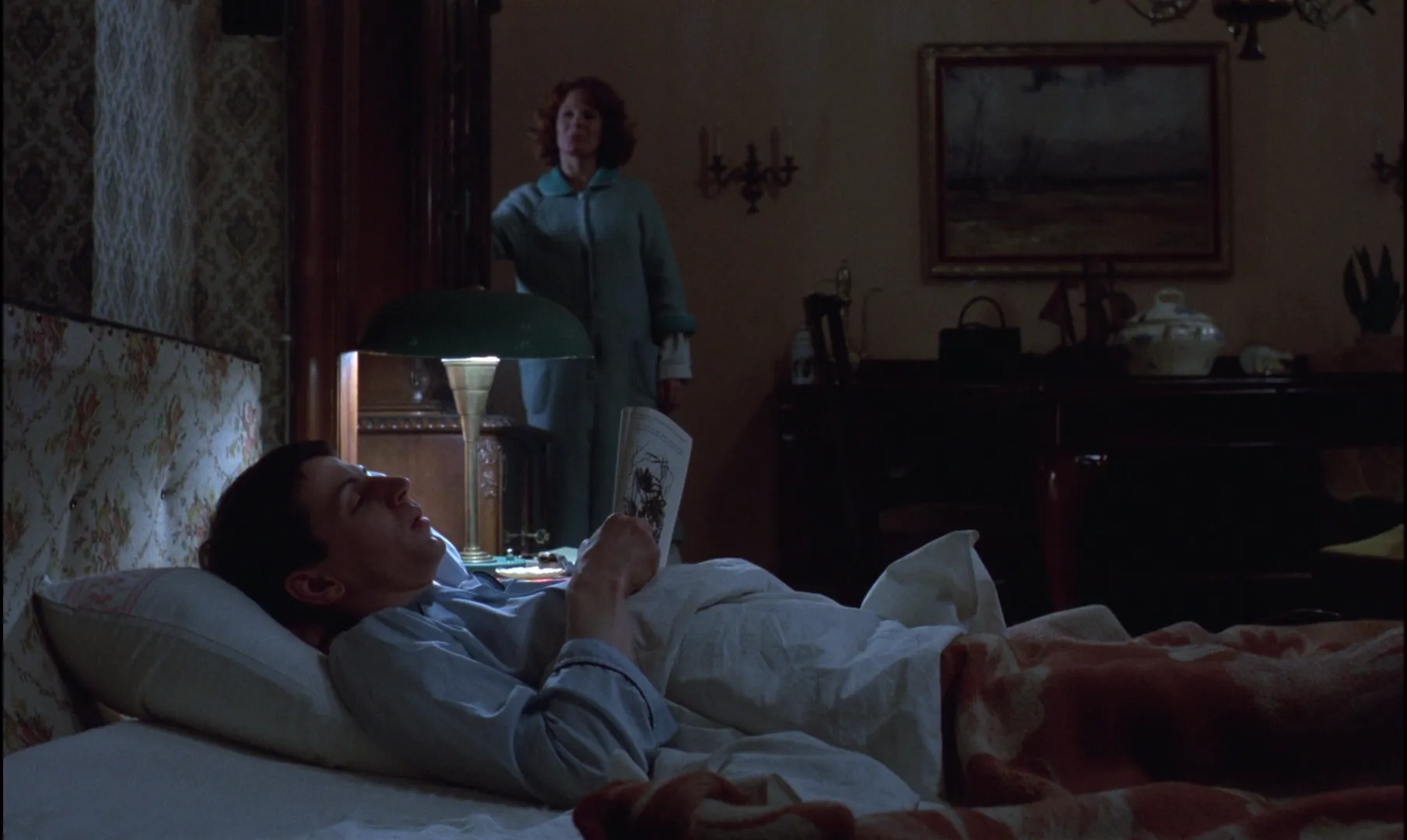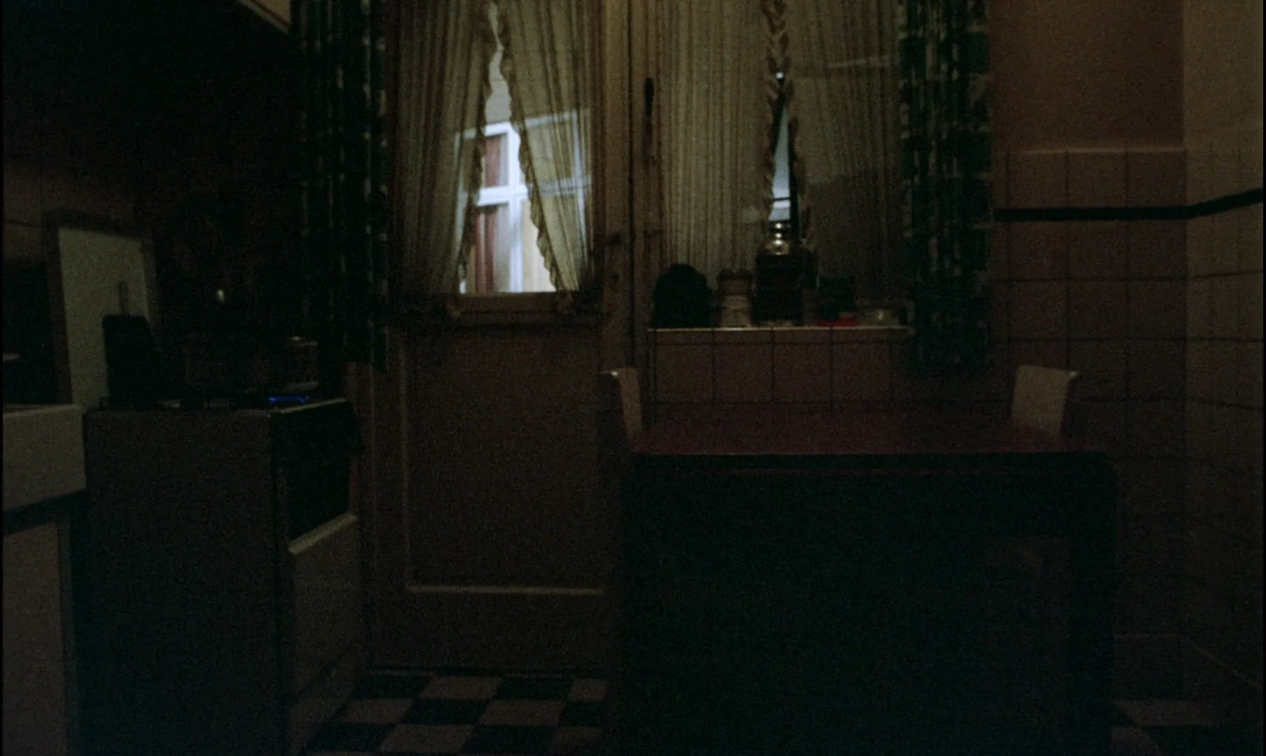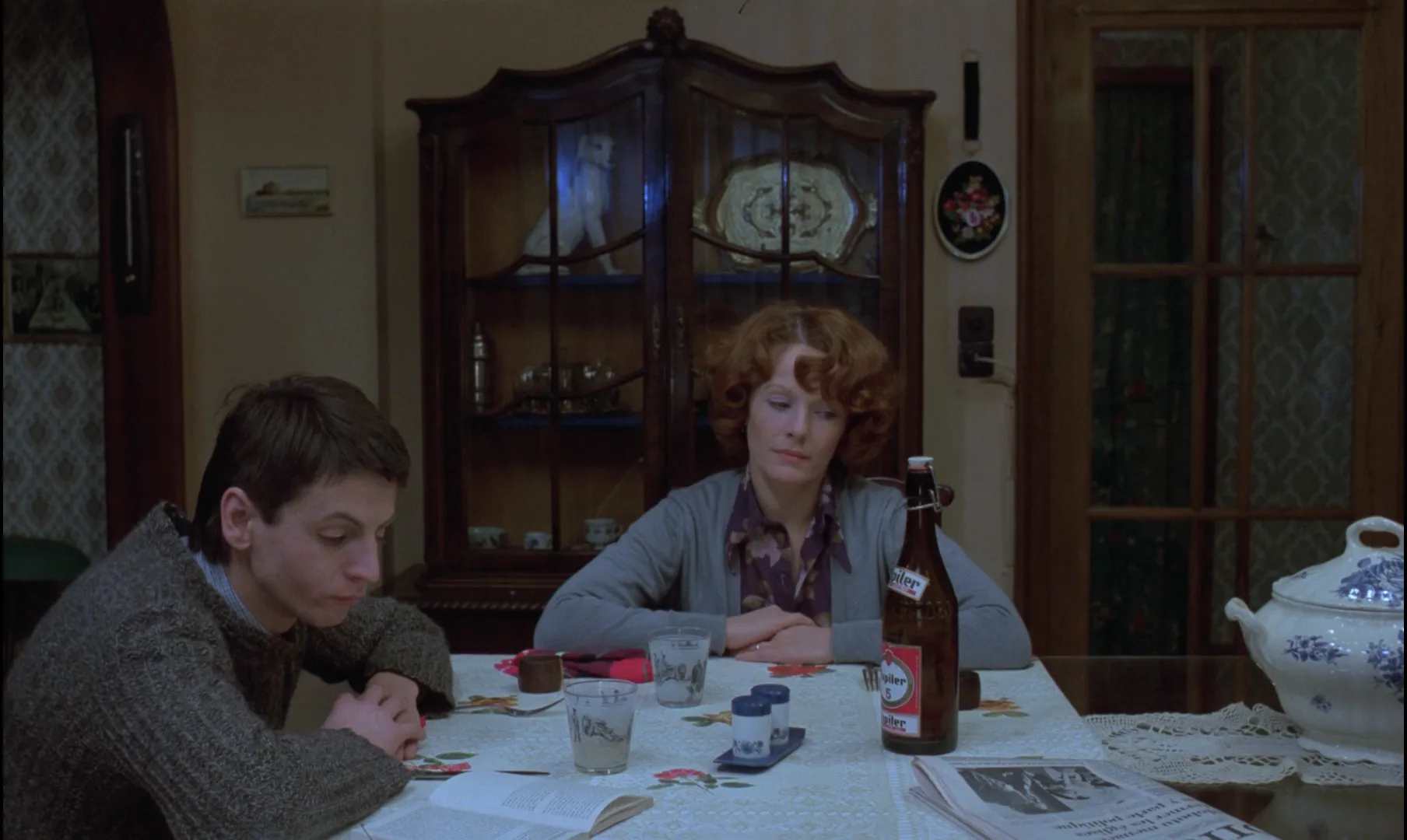 两个人坐在桌子的不同位置,希尔凡发现母亲有点异常,也没有进一步关心,对他来说只是吃饭晚了点。而我们既是在场者,又无法介入,只能看着她等主食煮好,那些焦心的动作;吃完饭,由于时间不对,广播里的“致爱丽丝”变成了歌剧,使她更无法下笔写信,这些小小的变故都在制造恐慌。
