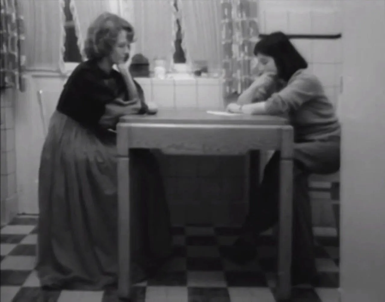 她帮女邻居看管孩子,邻居来接小孩时,对让娜·迪尔曼讲述了自己买菜时的纠结。这段话由阿克曼声音出镜,她在画外流畅地说着,而我们倾听着,妇女们总是在调度食谱,厨房里的事情非常重复,却足够单纯。