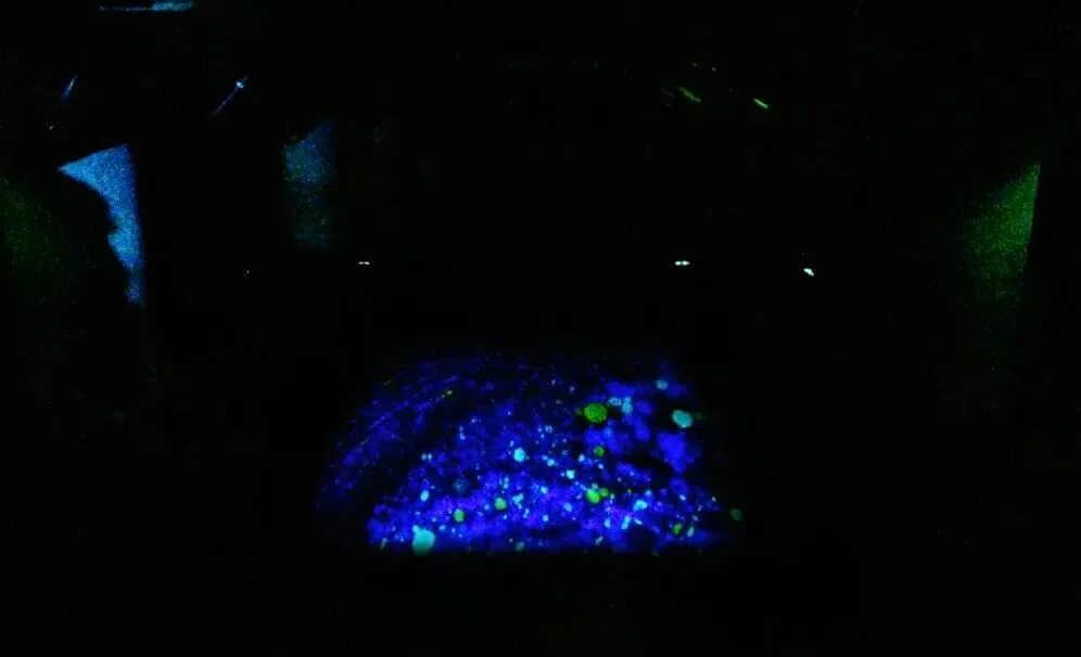 《Underground》相比于《GAMA》少了一些日常的影像,更接近于一部完全的实验电影。其中最显著的是以投影方法拍摄的镜头以及实验性的声音设计。影片开头的投影是许多色彩绚烂的波点,配合人声的吟唱带来了一种极其梦幻的气质;这之后的投影则更多是一些现实的影像。关于投影的使用您有怎样的设计?