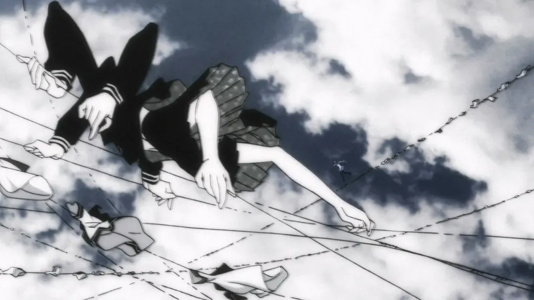 生死观念。 在几原邦彦的《少女革命》中,直到结尾部分,主角才得到警告:这不是游戏,如今死亡是真实存在的可能;而在这里,我们从一开始就被告知如此,作品从一开始就坚定地朝向完全严肃的语境中移动,这一严肃在动画体裁中通常意味着日常生活性(生活符号?)的完全丧失。在此它取得了成功,这产生了一种完全紧凑的结构,几乎不使用任何烘托性的细节、旁支,同时又并不显得“脱离实际”。