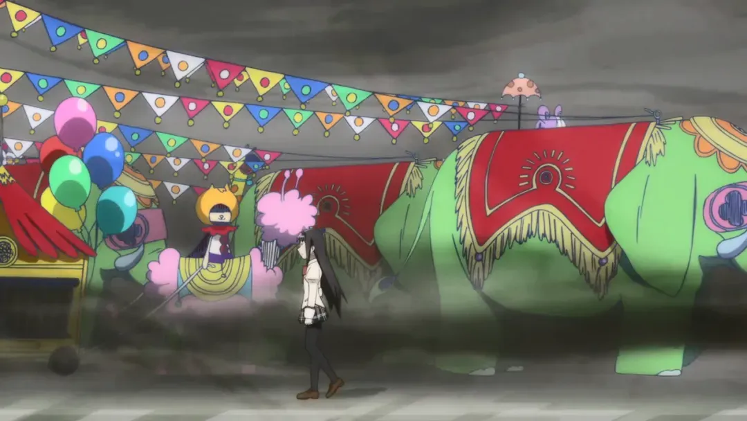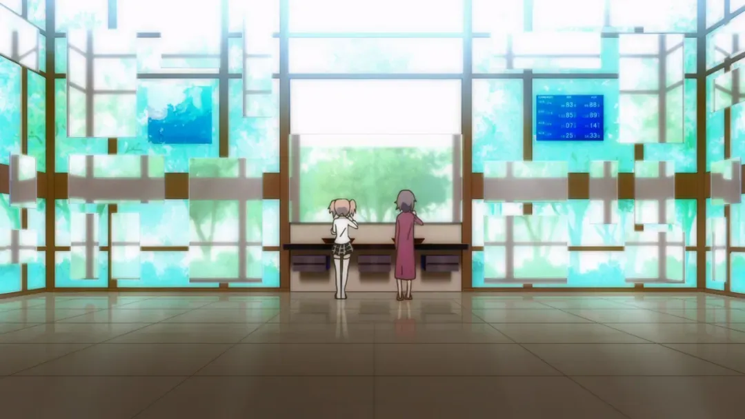 剧集中单纯为了推动进展而设置的一些事件——主要是魔女的危害,例如尝试跳楼或尝试集体自杀,但也包括比如说恭介的小提琴——显得非常简易:作品甚至仿佛不在意我们是否觉得它粗陋可笑。我们是否可以说,这样的粗陋和背景作画的粗陋是类似的?这也就解释了,我们为什么不觉得它们特别过分(不像几原邦彦剧集中的某些filler⋯⋯)。类似地,一些插入或闪回段落可能有叙述意义,但没有叙述价值;它们完全是平凡的组织元素。有趣的是,这似乎在动画中比在真人电影中更“可原谅”。