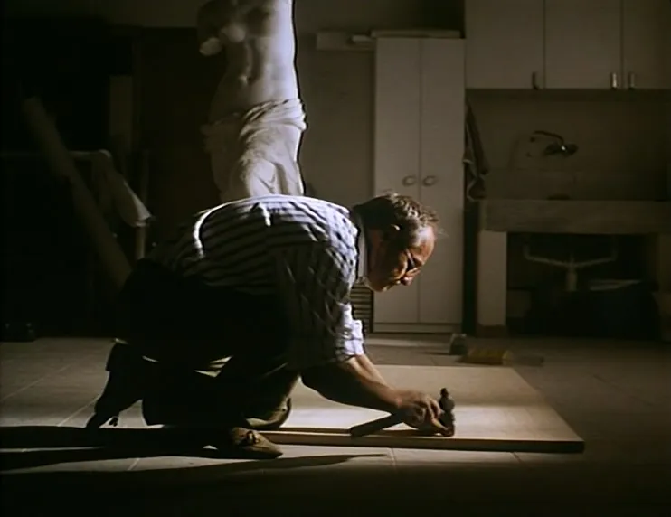 我是好几年前观看的这部电影。过去这么久时间,我早已忘记电影内蕴藏着的许多事物。模糊的记忆里,依稀记得电影的内部存有这样一个恒久的运动:劳作。电影开头的那数个镜头,似乎便是在邀请我们进入一场持续的劳作。在一个略显空旷的屋子内,画家安东尼奥·洛佩斯·加西亚[Antonio López García]为我们“表演”了他在作画之前的准备工作,而在他本人这些繁复的手部动作与姿态里,我们首先认识和理解的是他的形象。