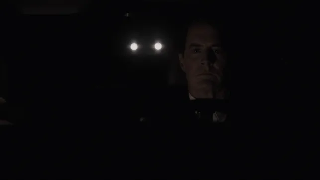 然而,影片在这里却再一次转向,在第十七集过后,库珀似乎已经不再是那个我们感到亲切熟悉的FBI探员,而变成了一个颇为现实的混沌体。将近30个小时的归途,从德克萨斯州的敖德萨从南向北跨越美国,到西北部的华盛顿州。沉寂的夜路,几乎所有能够借以佐证速度的参照物都被浓稠的黑暗吞没了。行驶中的汽车在此刻化作了黑暗中一个恒定的点。我们长久地守望着这位库珀的沉默——或许,在敲开那扇门之前,或许在我们凝视着道奇脸上无比确凿的衰老的痕迹时便该知道,便该将所有的时间都视作存在的历史。在眼下这个复杂的混沌体当中,历史前所未有地重新被揭开。