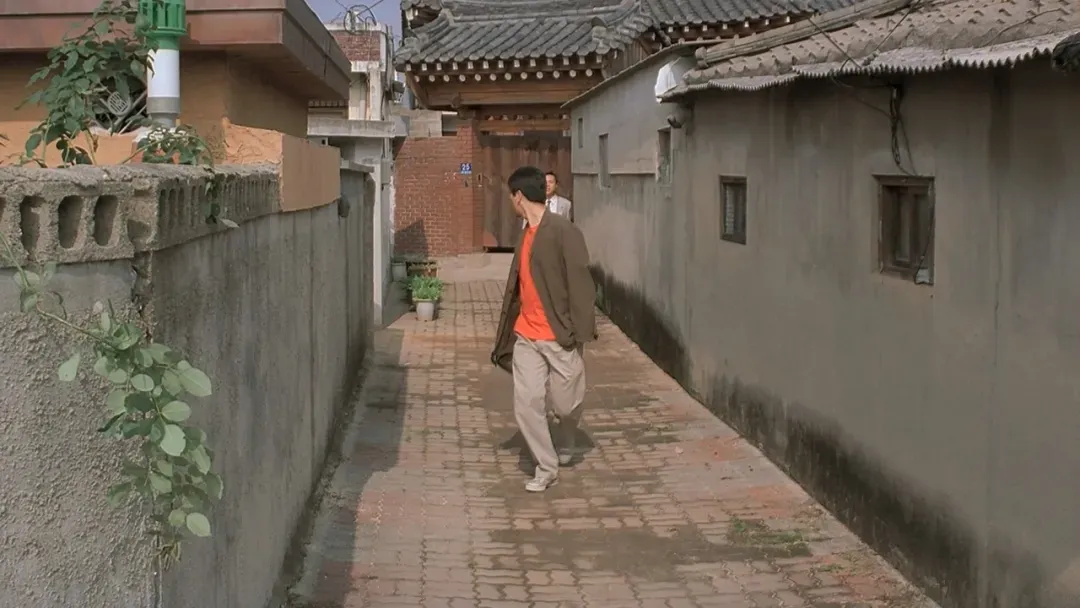 这绝无关于如今一提“不写剧本”、人们脑中就会浮现出的那种等待灵感从天而降的艺术家式任性(尽管洪的确自嘲有拖延症)。每天一小时的即兴写作,何尝不是在持守另一种自有节律的劳作?不是设计师的劳作,而是户外写生画家的劳作;这种劳作不要求作者未雨绸缪,反逼迫他航行于偶然之中,直面不可预知的风浪,随机应变、尽力掌舵。但这并不是在说,洪的即兴仅止步于写作的阶段。再完整的剧本也终究只是一份更详尽的大纲;剧本不能写尽电影,正如一小时不能写尽一整天。在一天余下的时间里,即便洪常秀向来以对表演和场面调度的严格要求而著称,拍摄仍注定是一段不断遭遇偶然、不断发现意外之喜的旅程。你能想象,作为全片最大笑点的那句“Can you speak English?”最初被写下时完全不是为了搞笑吗?正如洪也料想不到金相庆的某一副表情会看起来格外猥琐,以至于忍不住在片场大笑出声,打断了拍摄。或许正是经由这些偶然的发现,洪渐渐偏爱轻松的幽默胜过恶毒的讽刺,于是萦绕在前三作中的不安氛围愈发远去,我们来到了焕然一新的第四部洪常秀电影,《生活的发现》[생활의 발견, 2002]。