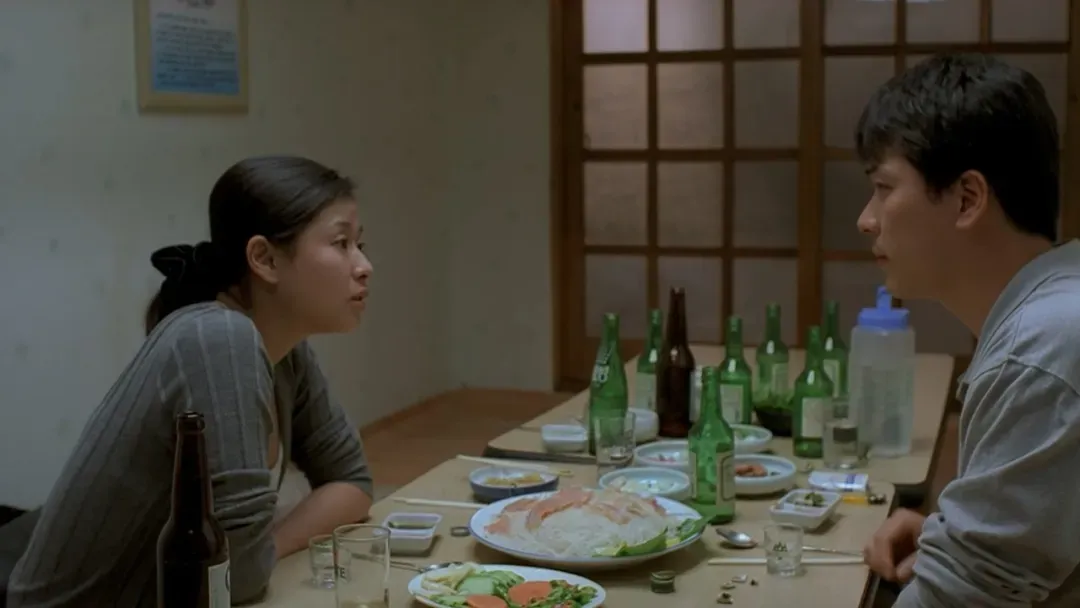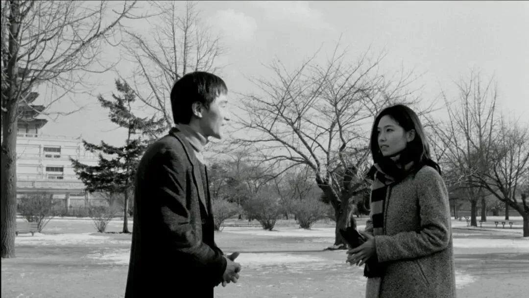 那么,洪常秀从生活中发现了什么?一个男人和两个女人的故事,一个女人和两个男人的故事,或者两类三角关系彼此交叠,串成一条更复杂的线索——如此这般的故事模型,前作已屡次三番演绎过,此后亦将不厌其烦地回归。如果“发现”指的是这个,那似乎谈不上多么新奇,何况不同于洪在10年代拍摄的那些轻盈灵动的电影小品,此处对男女情欲的刻画尚未完全摆脱世纪之交亚洲现实主义电影的典型气质:过于粗暴的动物性,以及彻头彻尾的男性视角(就后者而言,连彼时对洪的电影倍加推崇的克莱尔·德尼[Claire Dennis],都不得不在推介文章的结尾自我反省道:“能如此热爱这么男性化的东西的人,必然是受虐狂。”)