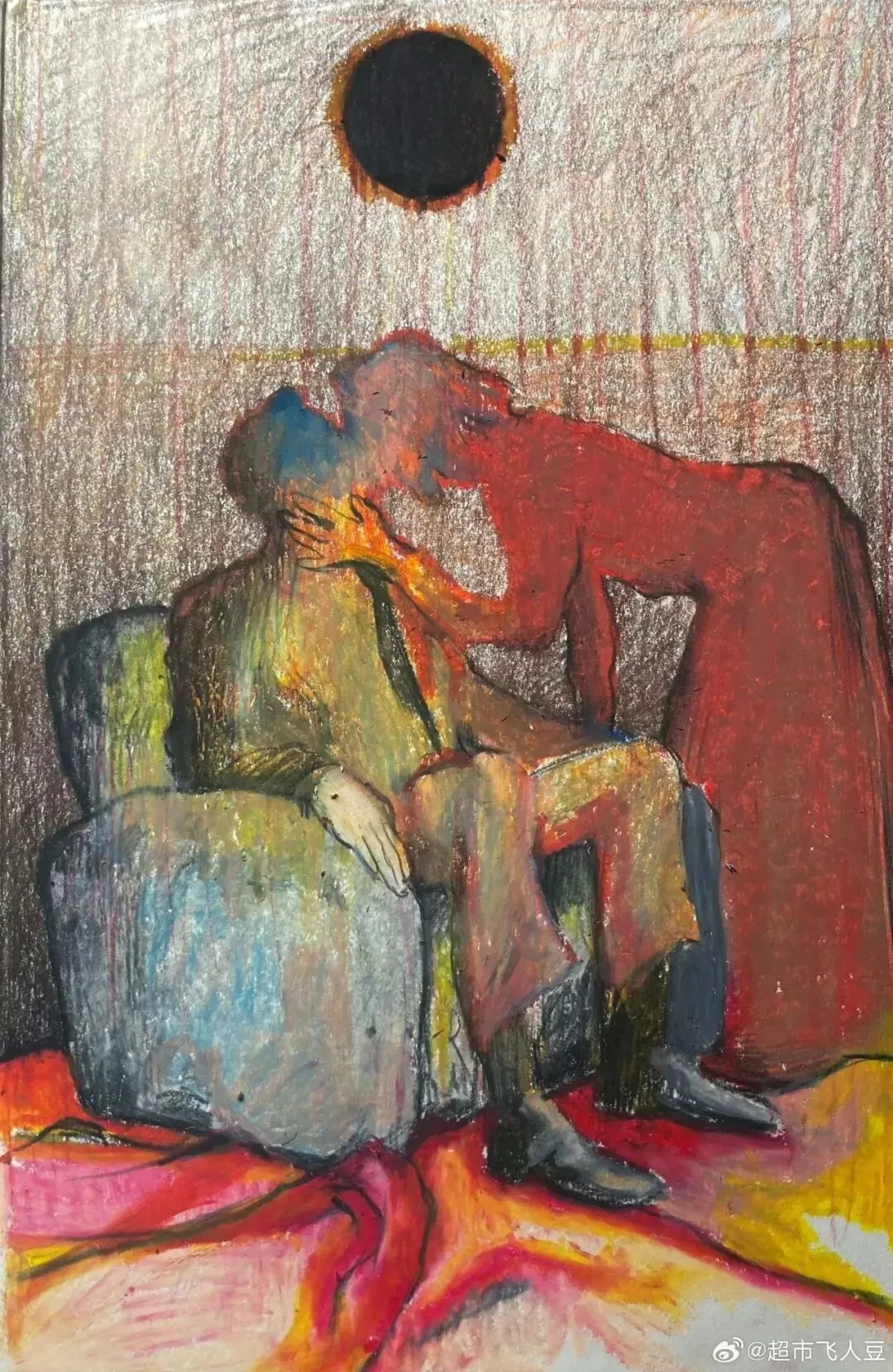 石新雨:我觉得很棒的是,你不但接各种投稿,还自己做产出,你有很多《双峰》相关的画作,比如那张豆豆眼全家福(你还把它们做成了一个个小贴纸,来我们放映现场分发!),以及一些库珀和哈利的cp图,它们都神采奕奕,但我最感兴趣的,是你的那个红房间小模型,请问它是怎么做的?