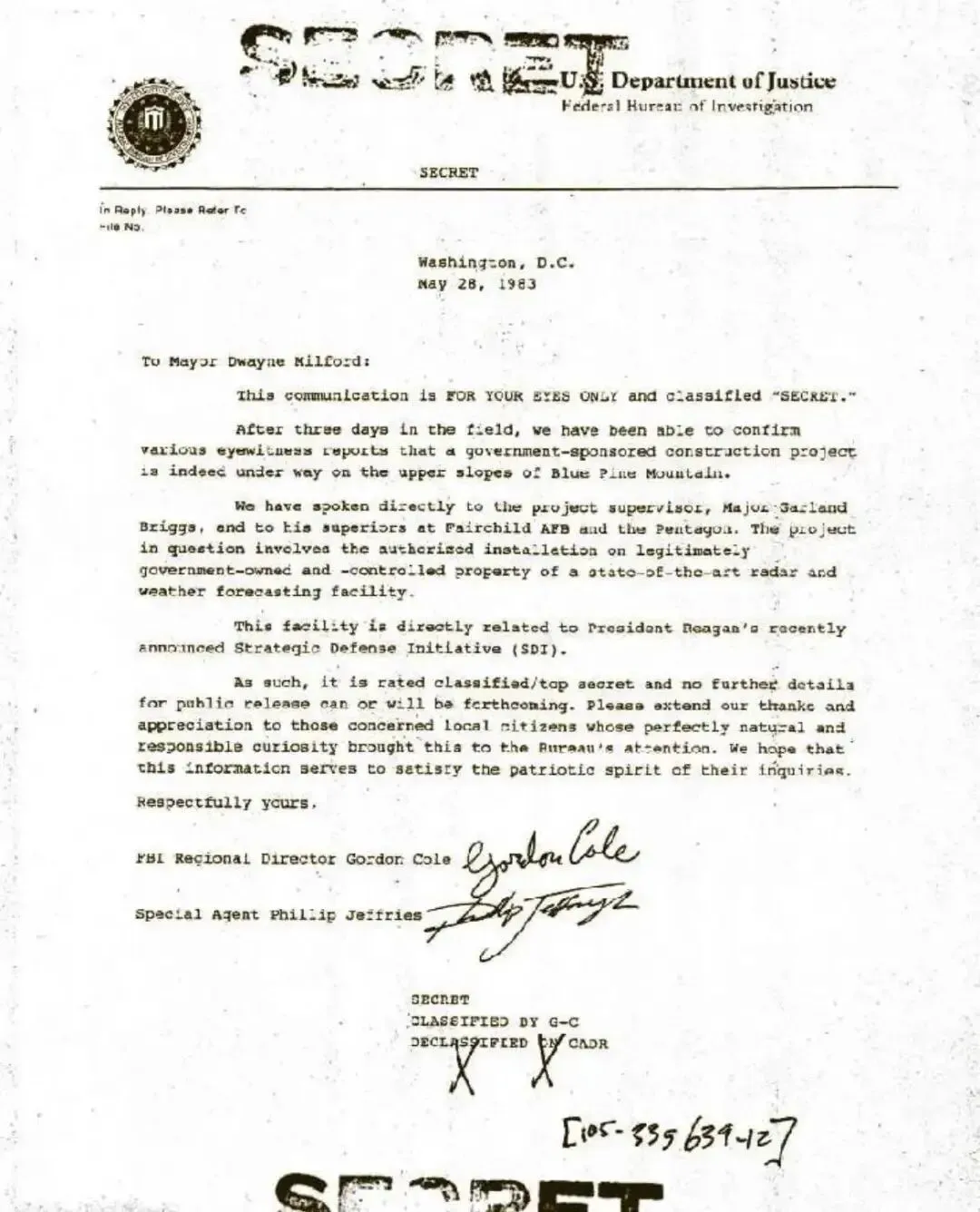 菲利普·杰弗瑞斯签名的政府机密文件