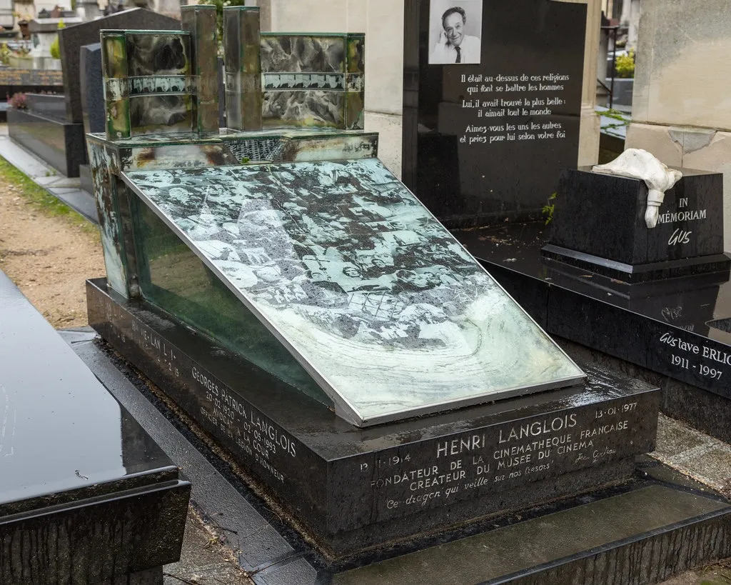 两年前,托朋友的福,我看到了亨利·朗格鲁瓦[Henri Langlois]墓碑的照片,那是一块被填满的琥珀,压缩着朗格鲁瓦所珍藏的一部分电影形象,它们并不按照时间排序,而是拼贴成面孔的网络,如同黑白的星空。有些面孔即使被塞进缝隙,也拥有不证自明的力量。朗格鲁瓦,那位肥硕贪婪的巨人,他提醒着我们资料本身的庞杂,你大可以用自发的联想,来抵抗所谓完整的历史。在朗格鲁瓦的名字下方,是科克托的题词:“守护我们宝藏的龙。”