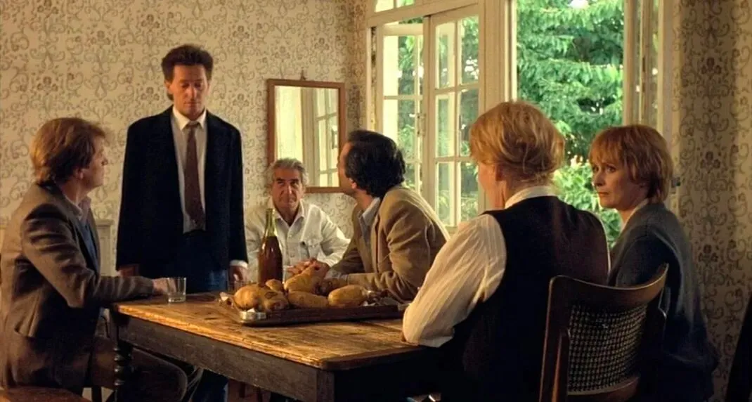然而,相较于H-S如同两位精湛的炼金术士一般,在《老调重弹》中对“孩子”与“ta的童年”之间的内部神话的秘密提炼,杜拉斯在《孩子们》中所描述的那一类隐晦却发人深省的微妙时间性,或许更值得引起我们的注意。这种应用于时间的性质,从来不曾在其它任何电影中被我们看到过,也是H-S最终无法把握的事物:不仅在于杜拉斯找了一位相貌颇为古板的成年男性去饰演那位早熟的孩子,还在于每一位演员的表演手段(对语调的选择,或是繁复的手部动作)都本能地拒绝令自身拥有一个“正在流逝的时间”——甚至整部电影都在拒绝被时间察觉乃至被时间“流逝”。