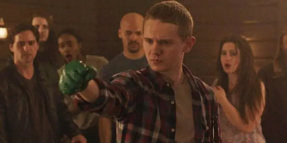 《双峰:回归》[Twin Peaks: The Return, 2017]接近结尾时,弗莱迪讲述着绿手套的故事。这只手套呼应着《橡皮头》的名字,它念诵着物质的历史、现在和将来,此时他拥有了所有(那些手持着均等的光线和能量束)的超级英雄所没有的,就是这种力量。