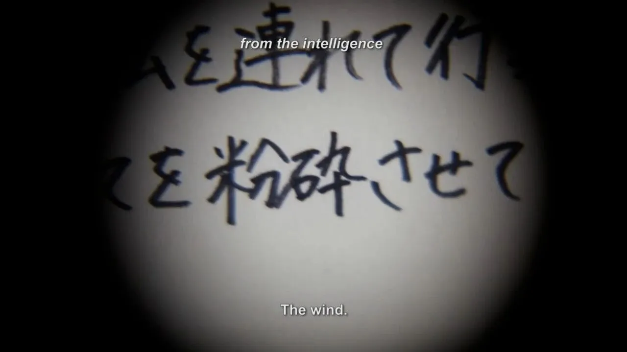 「Cogito」2是我和团队讨论要如何翻译的结果。我理解的是,「わ」[wa]是「わたし」(我-watashi)所形成之前的发音,而「Cogito」包含了「我」,同时也包含了「我」之前的意识,所以我们就添上了这样的字幕。