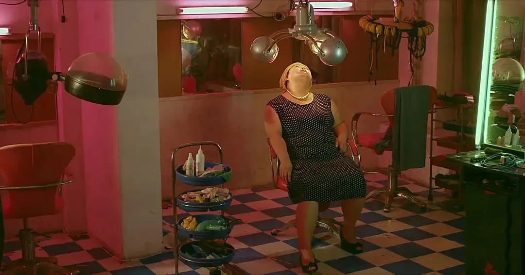 在《狂野时代》内,毕赣的场面调度手段无疑迎来了策略层面的重大变化,当然除了最后的“触觉篇”仍旧贯彻了他钟爱的“一镜到底”之外,我们能够发现“视觉篇”与“嗅觉篇”都曾出现(相较于前作)更类型化的调度手段。从《地球最后的夜晚》开始,我们轻易发觉了毕赣的文本写作仰赖着对类型的变形(尤其是对中国黑色电影和乡土电影的融合与再变形),也因此到了《狂野时代》,这种对“类型变形”的写作倾向愈发显眼。但这样的讨论对一部刁亦男电影也同样有效,而选择赞扬《狂野时代》并持续对《白日焰火》[2014]和《南方车站的聚会》[2019]表示冷漠,则是因为我无法在一部刁亦男电影中看到布景的趣味,但在《狂野时代》里这种趣味却始终存在。本文所谈论的趣味不是指《南方车站的聚会》当中的马戏团帐篷或者居民楼那样,分别在符号地位和空间设计意义上的耳目一新,而是指一种对目光的更新和提醒——“我的目光被作者的场面调度提醒着,我需要重新审视这个布景内曾经出现的那个物质”。